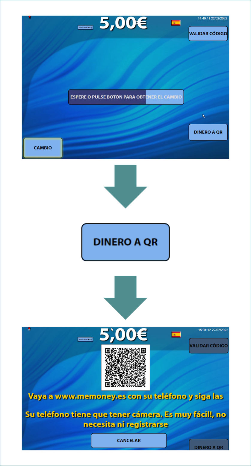 2. Pulsa el botón Dinero a QR de la pantalla del cajero.