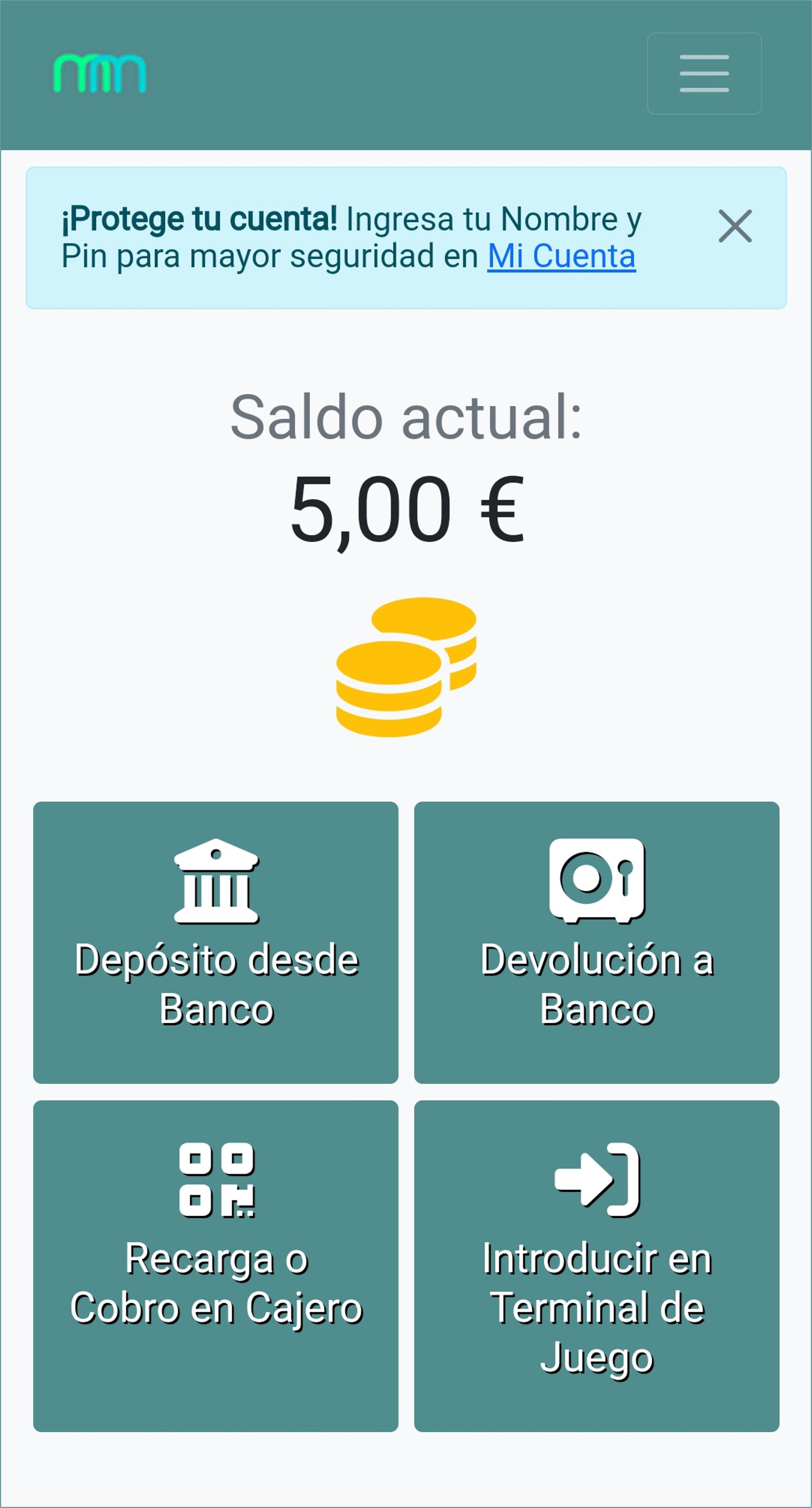 Recarga o cobra una cantidad en memoney mediante los cajeros disponibles en los locales de juego.